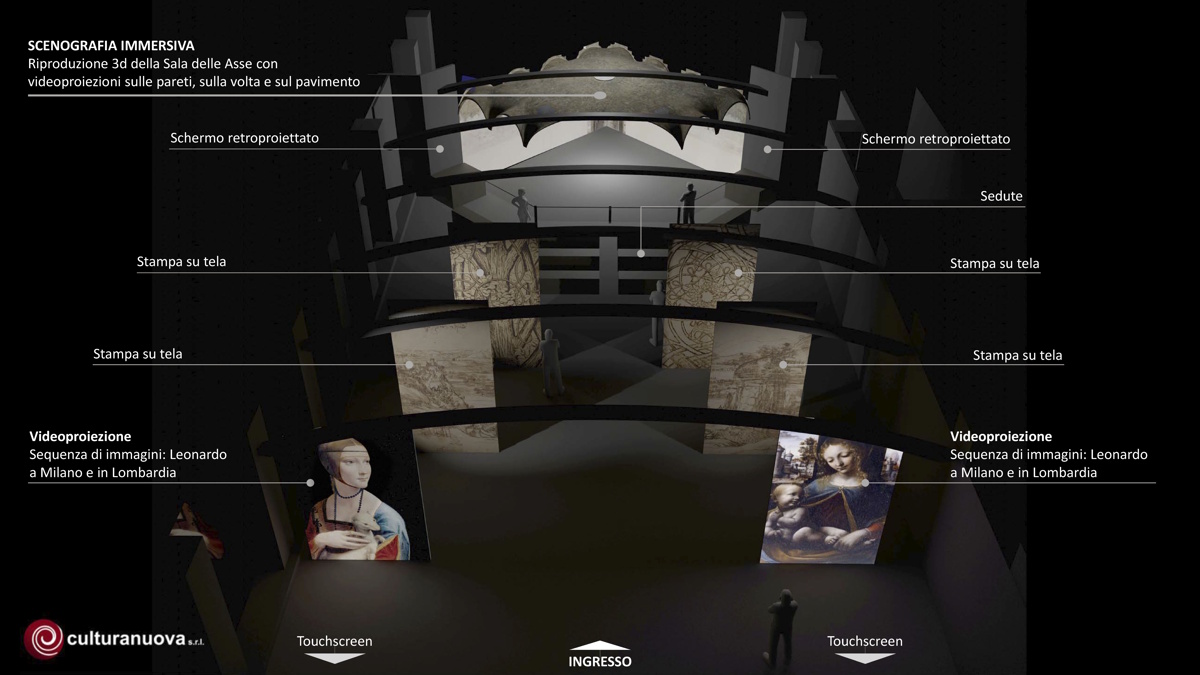 Il progetto si sviluppa lungo tre direttrici principali a partire dall’apertura eccezionale della Sala delle Asse durante l’ultima fase del cantiere di restauro. Quindi, sono state annunciate una nuova installazione immersiva nelle Sale Panoramiche e il riallestimento della sala dedicata ai leonardeschi nella Pinacoteca del Castello.