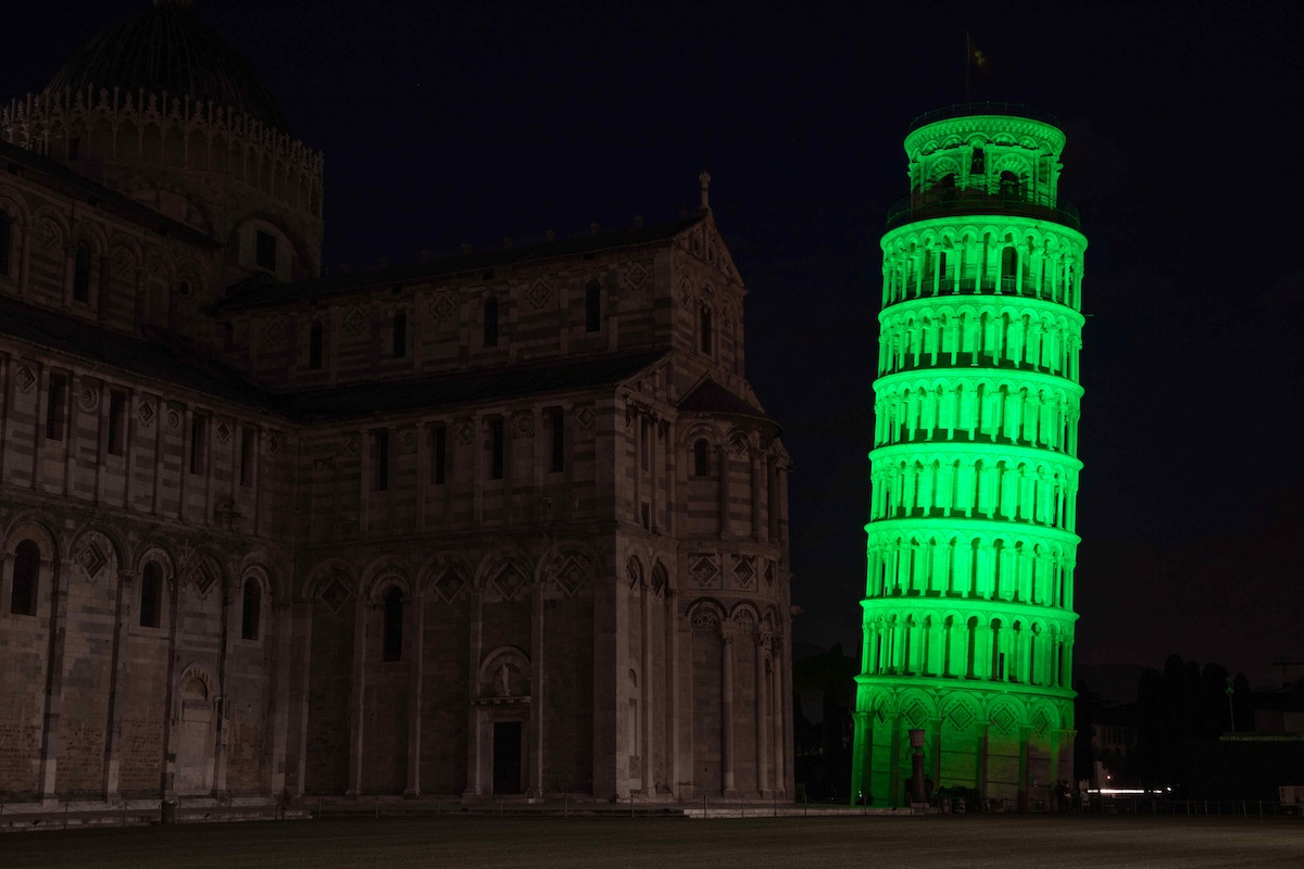 La Torre di Pisa si illumina di verde per San Patrizio: l’Italia entra nel Global Greening, l’iniziativa internazionale che tinge di verde i monumenti simbolo del mondo.