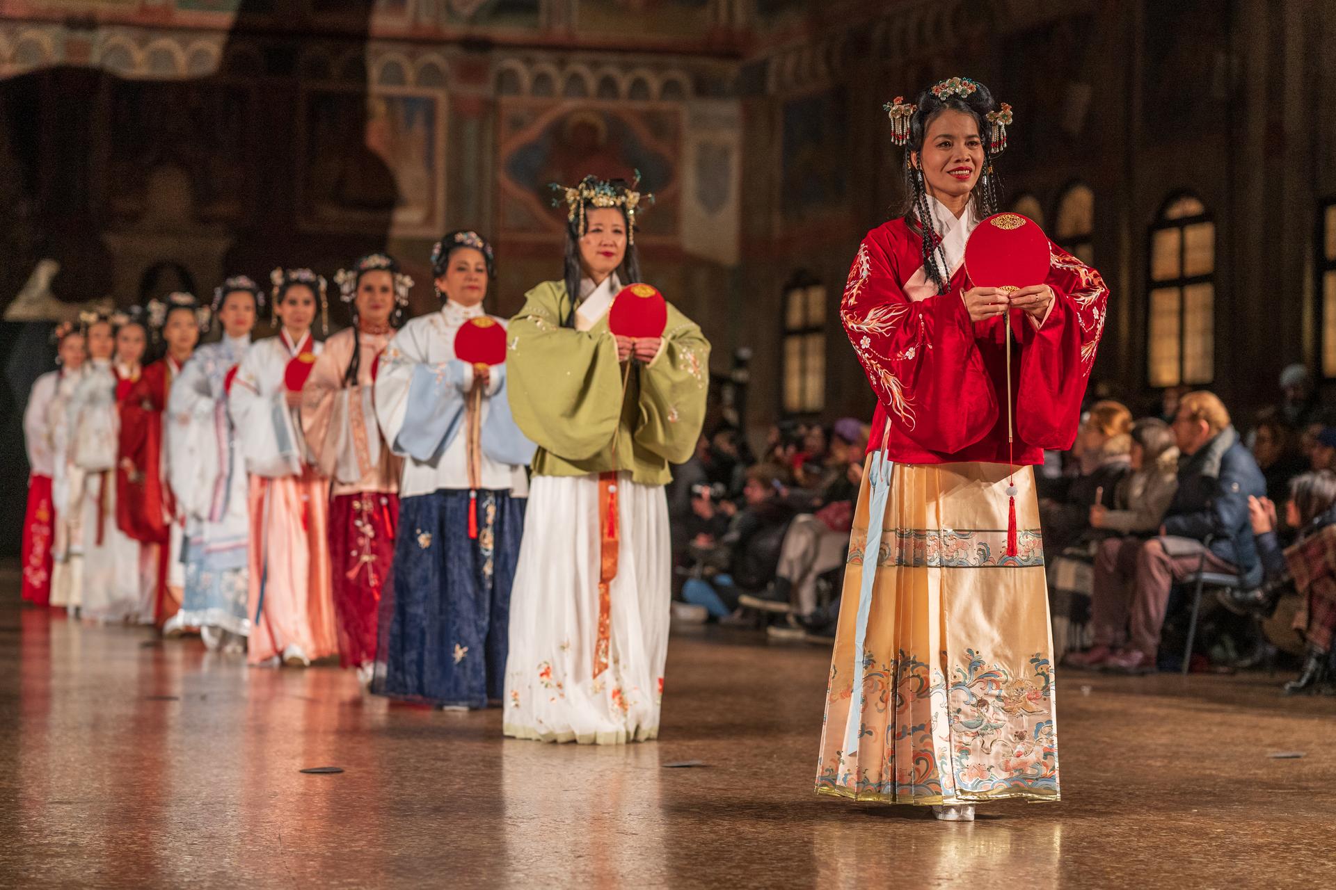 La sera del 22 febbraio, poi, l’Auditorium del Centro Culturale Altinate San Gaetano ospita lo spettacolo Benvenuto all’Anno del Cavallo: Eleganza ed Energia, una sfilata dall’estetica contemporanea ma con l’artigianato tradizionale nel cuore. Protagonisti sono gli abiti in seta xiangyunsha, un tessuto unico della provincia del Guangdong, tinto con pigmenti vegetali naturali e fango fluviale, inserito dal 2008 nel patrimonio culturale immateriale nazionale cinese. Le creazioni, realizzate dal College of Arts della South China Agricultural University, raccontano una Cina che innova senza perdere il legame con le proprie radici.