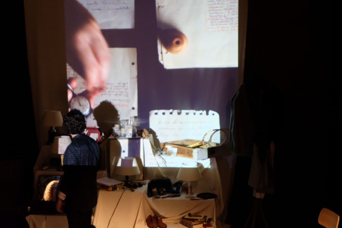 L’ascolto ha convinto la compagnia Illoco Teatro a portare in scena un intero mondo, che assume i tratti di un giallo sulla rimozione e sull’Io. Il rapporto tra reale e immaginario, tra sogno e mistero, tra il Sé e gli altri si trasforma sul palco in una grande parete ispirata a un sogno dello stesso Ennio. Lì, una serie di quadri è illuminata da abat-jour e torce elettriche manipolate dagli attori in un continuo scambio drammatico di luci e ombre.