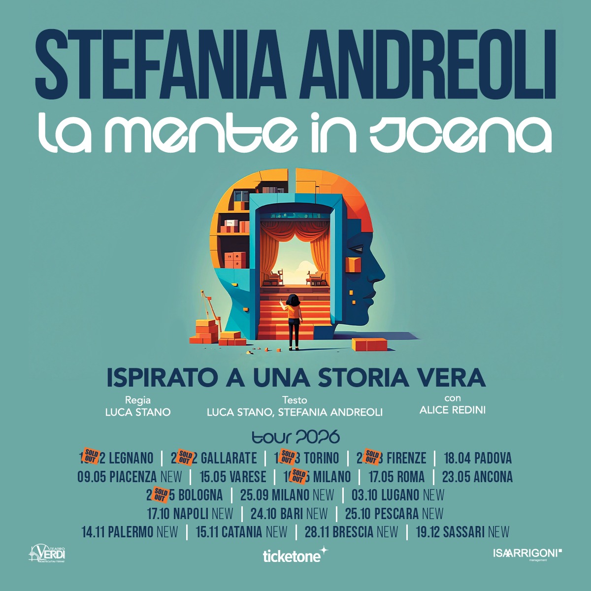 Dopo i sold out registrati a Legnano, Gallarate, Torino, Firenze, Milano e Bologna, La mente in scena, il primo spettacolo teatrale di Stefania Andreoli, amplia il calendario della tournée 2026 con nuove date in tutta Italia e all’estero.