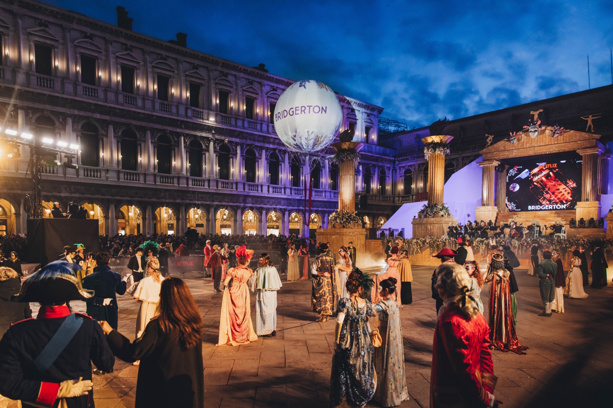 Un gran ballo in stile ‘Bridgerton’ porta al Carnevale di Venezia l’immaginario della serie