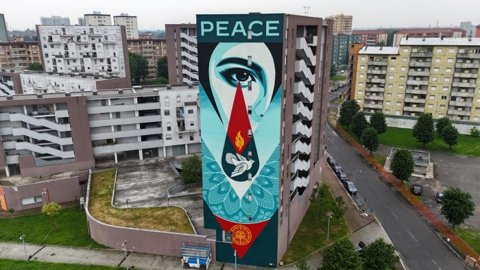Shepard Fairey in arte OBEY firma il suo primo murale a Milano