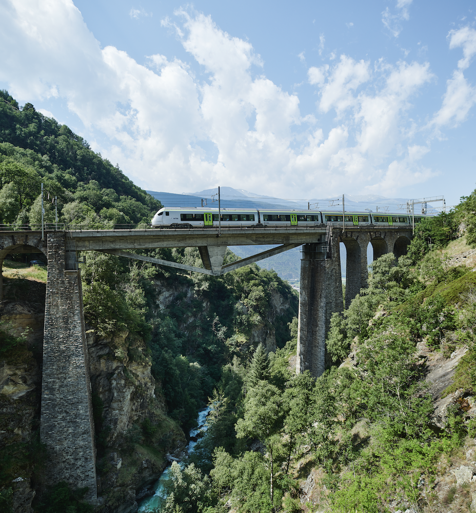 Qui l’ingegneria ferroviaria diventa quasi scrittura nello spazio, fatta di curve, pendenze e tempi calibrati, fino all’attraversamento della galleria in quota del Lötschberg, che conduce in pochi minuti a Kandersteg. Anche la rampa nord, gestita da BLS, è un piccolo capolavoro: pendenze importanti, gallerie elicoidali, viadotti spettacolari come quello di Kander, forse il punto più fotografato dell’intera linea. In questi passaggi si comprende come la ferrovia alpina non sia solo un’infrastruttura funzionale, ma una forma di dialogo continuo tra tecnica e paesaggio.